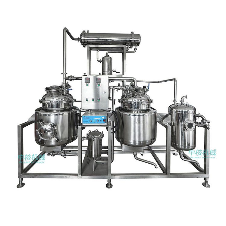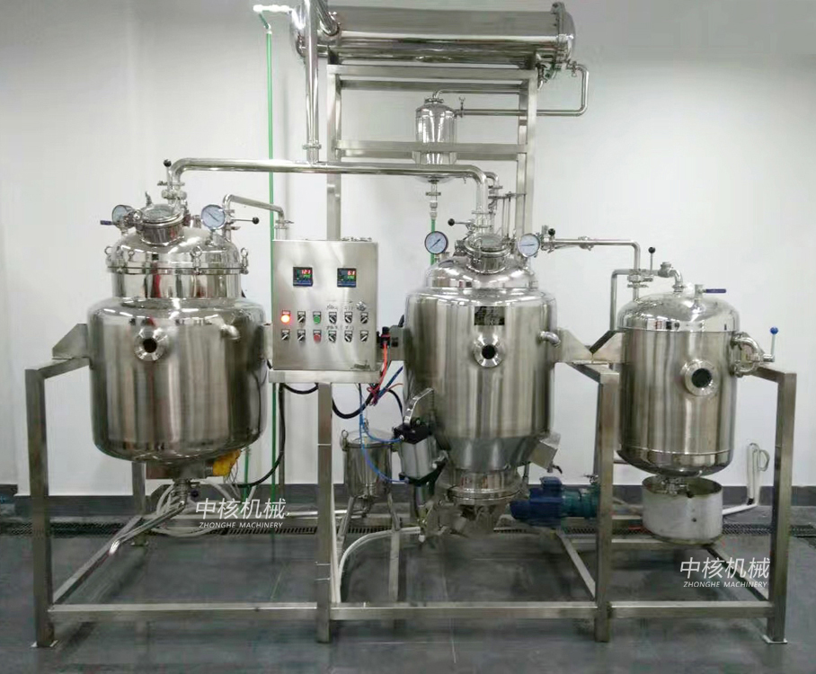 小型提取濃縮機組適用于醫藥保健、植物、生物制藥等行業的常壓、微壓、水煎、熱回流強制循環、植物精油、芳香油成分的提取濃縮及有機溶劑回收等多種工藝,設備符合GMP標準,主要適用于高校、研究所和企事業單位實驗室研發及中小試生產線。