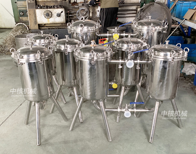 雙聯(lián)過濾器內(nèi)外表面拋光處理,濾筒內(nèi)裝有不銹鋼濾網(wǎng)和濾網(wǎng)支撐籃;頂部裝有放氣閥,供過濾時(shí)排放濾器內(nèi)空氣作用。上蓋與濾筒連接采用快開式結(jié)構(gòu),更方便清洗(更換)濾網(wǎng),三只可調(diào)節(jié)式支腳可使濾器平穩(wěn)放置在地面上。連接管路采用快裝連接方式,進(jìn)出料閥門采用三通球閥啟閉,耐壓耐溫,操作靈活方便,無料液泄漏更衛(wèi)生。